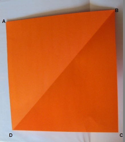 2 - Dobre o quadrado pela diagonal e junte A com C.
