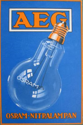 | Lâmpada AEG OSRAM. Publicidade. Litografia colorida- Museu Litográfico da Suécia. |