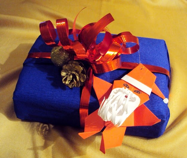 10 - Realize o chapéu e a barba do Pai Natal. Cole todos os elementos. Coloque um fio para pendurar no presente.
