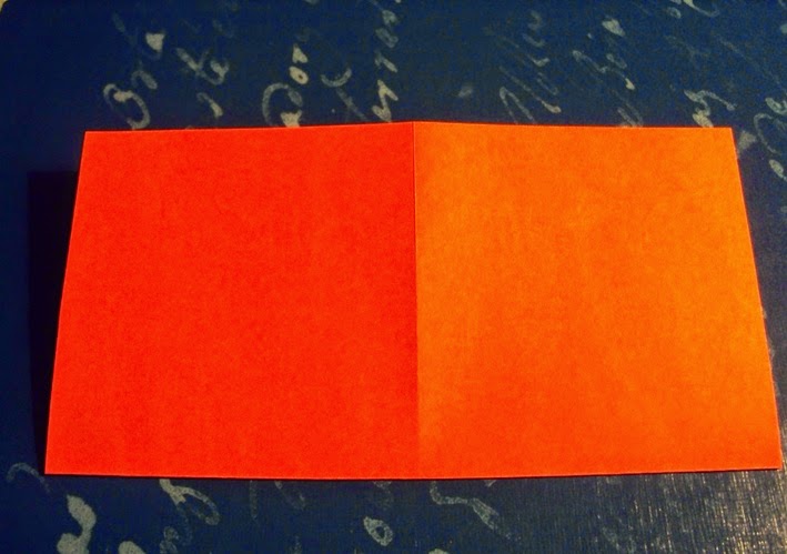1 - Corte um quadrado de papel encarnado com 14 cm de lado.