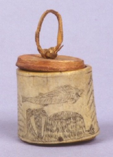 Caixa de rapé, osso, povo inupiaq, Mar de Bering - Burke, Museu da História e Cultura Natural