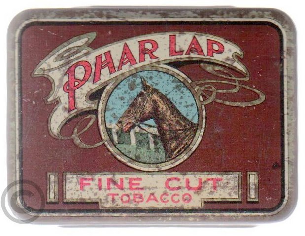 Caixa de tabaco, Myona Manufacturing Co, Melbourne, Phar Lap, corte fino