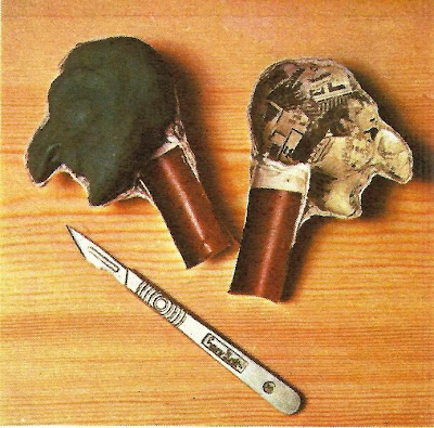 11 – Desenhe uma linha guia ao redor da cabeça e corte ao meio com um x-acto (5).