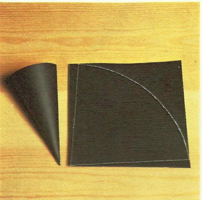 16 – Faça o chapéu conforme o molde (cone planificado num quadrado de papel), (8). Cole-o na cabeça.