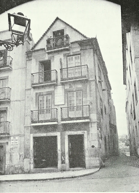 | Prédio onde segundo a tradição morou e faleceu Luís de Camões, na Calçada de Santana, século XIX. - Lucas, João de Almeida (1969), Sonetos de Luís de Camões. Lisboa: Livraria Clássica Editora |