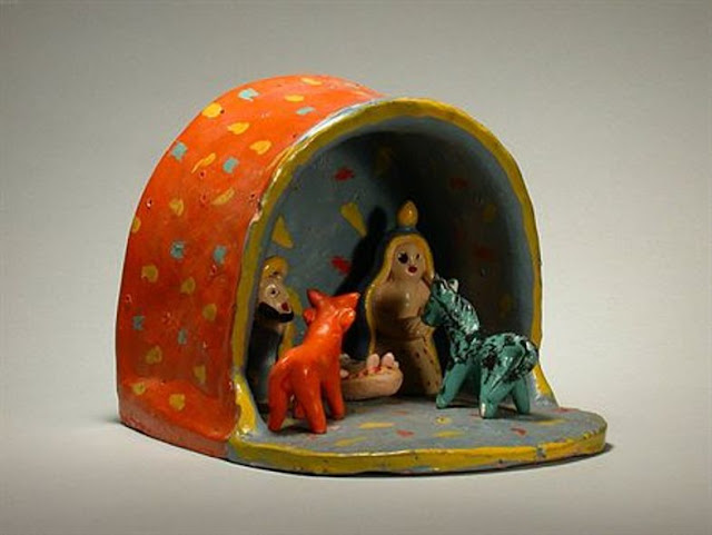 Este Presépio de Carlos Baraça, ilustra o dia 17 do Calendário do blog. Datado de 1996, este presépio faz parte do figurado de barro com origem em Galegos de Santa Maria, Barcelos. A peça em barro policromado (204 milímetros de altura x 209 milímetros de largura), integra a colecção do Museu de Olaria de Barcelos.
