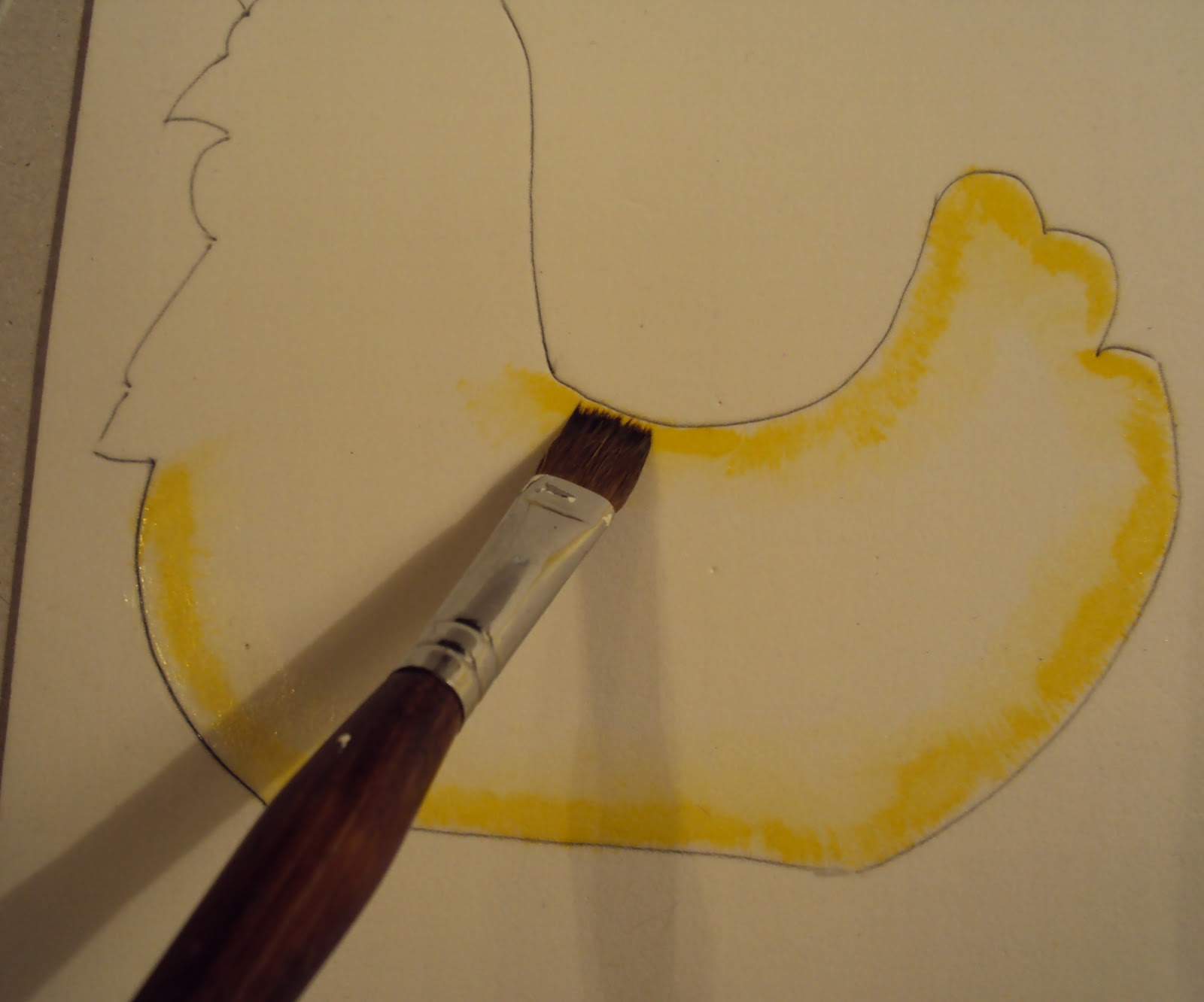 6 - Coloque um pouco de tinta branca no pincel e aplique sobre a tinta anterior seguindo o mesmo processo. Recorte depois de secar completamente.
