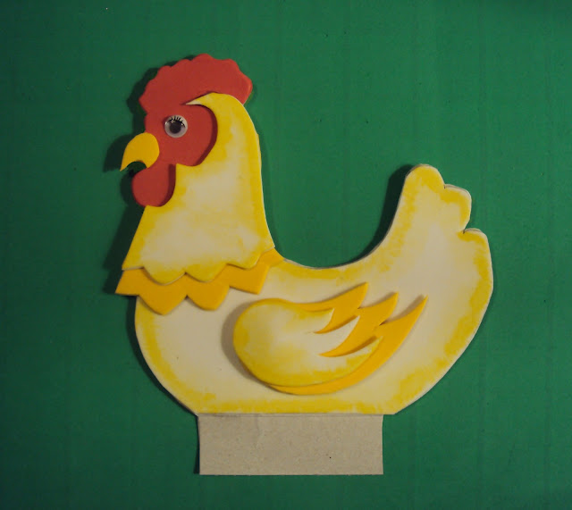 7 - Cole cada uma das galinhas em EVA sobre o cartão duplo (passo 3), imagem 6.