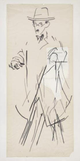 | Fernando Pessoa, marcador e colagem sobre papel vegetal, 1983. Desenho de Júlio Pomar - FCG, Centro de Arte Moderna, Lisboa |
