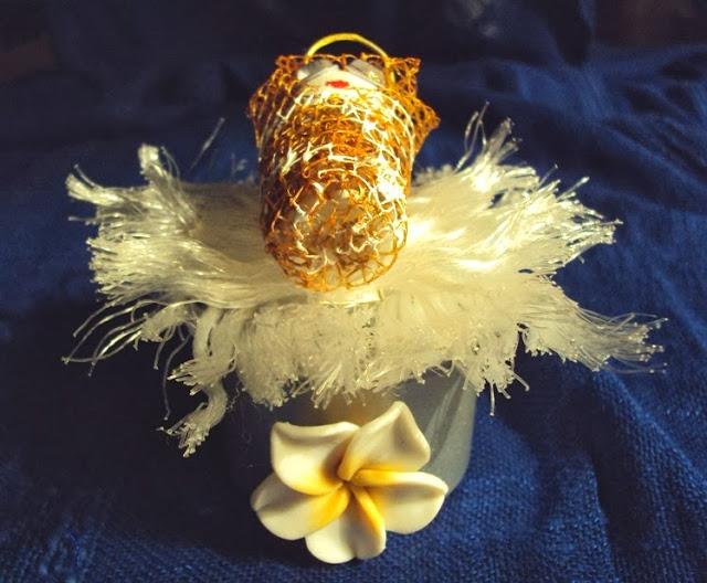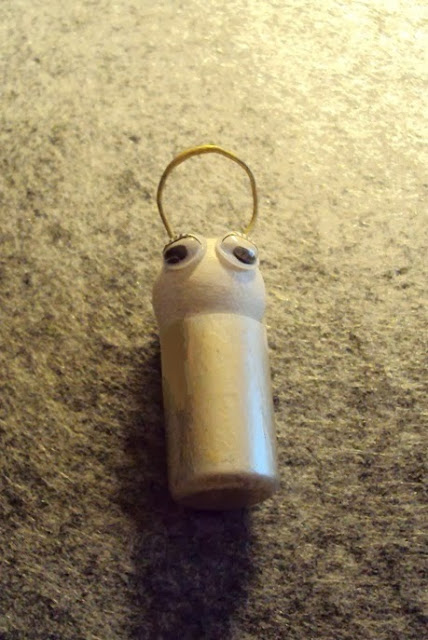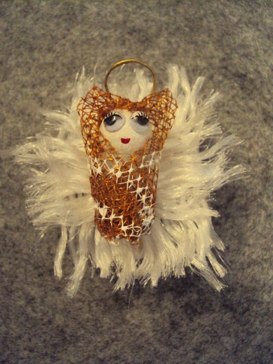 1 - Pinte a esfera com tinta acrílica na cor branco. Deixe secar e cole os olhos. Faça a auréola com o arame dourado (imagem 3).