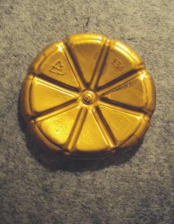 2 - Pinte as duas tampas na cor prateado. Cole a esfera sobre a tampa mais pequena (imagem 3).