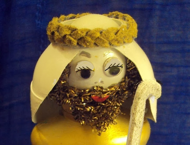 13 - Coloque o lenço sobre a cabeça da figura de José. Cole com cola a quente (imagem 19).