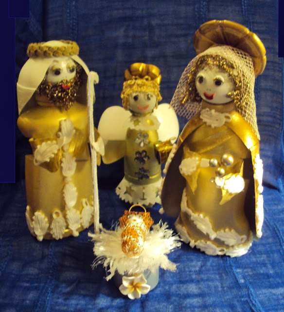 Se pretender um presépio mais completo, pode realizar um anjo em PET e juntar às três figuras da Sagrada Família.