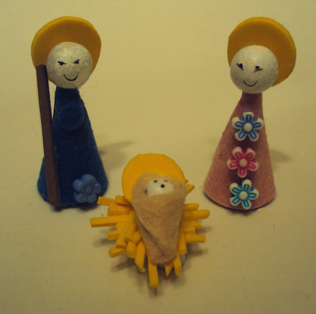 9 - Coloque as esferas maiores sobre cada uma das figuras de Maria e José. Coloque as aureolas e cole (imagem 5).
