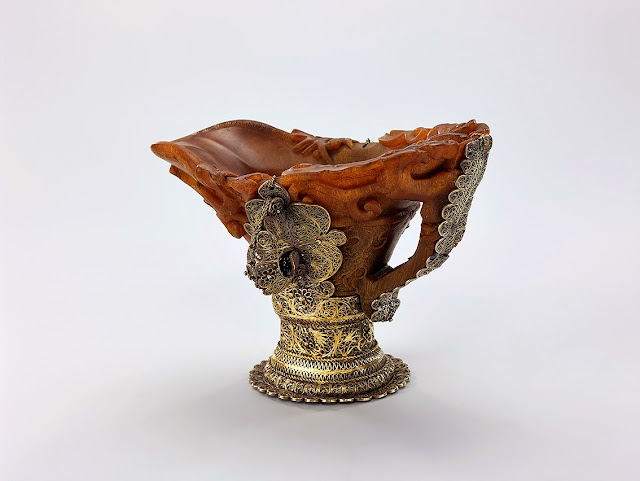 Taça de libação, província de Jiangsu, China; as montagens, provavelmente Manila, Filipinas, séc. XVII (segunda metade); chifre de rinoceronte e filigrana de prata dourada - Jornal "O Público"