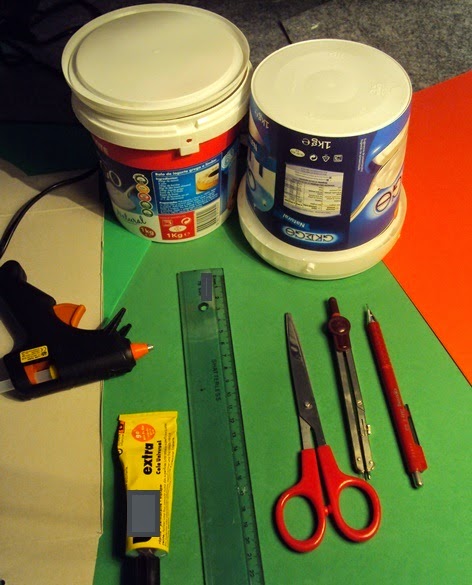 | 2 - Material: cartolina dourada; botões; rede PET; tinta acrílica dourada; pincel e cola a quente. |