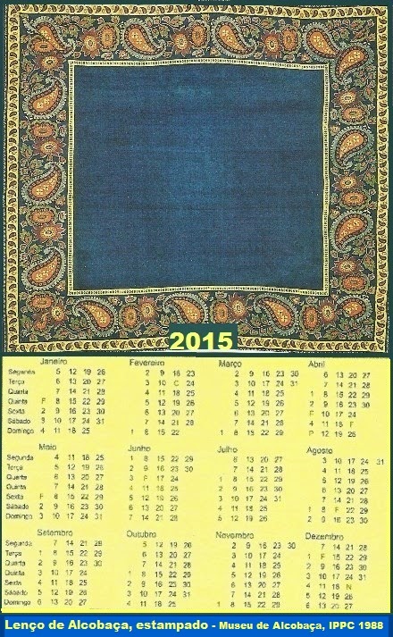 Algumas imagens de lenços e chitas de Alcobaça, um calendário de 2015 e conhecimentos de informática, são o bastante para a criação destes e outros calendários de uso pessoal.